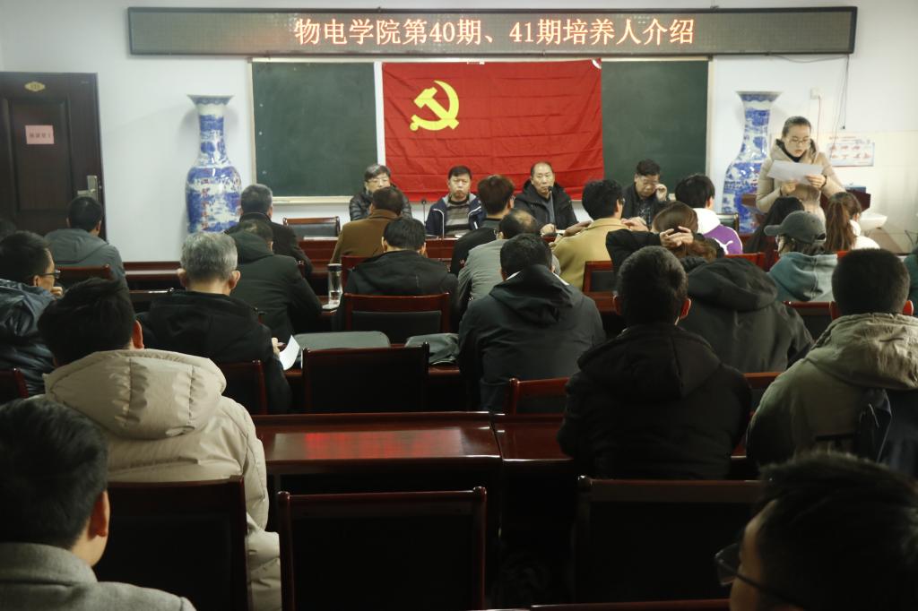 11月27日太阳在和钧楼222会议室召开了第40、41期积极分子见面会。本次见面会共对55位积极分子进行了考察。会议由院党委秘书汪君只主持,四位支部书记、全体教工党员和第40、41期积极分子参加。