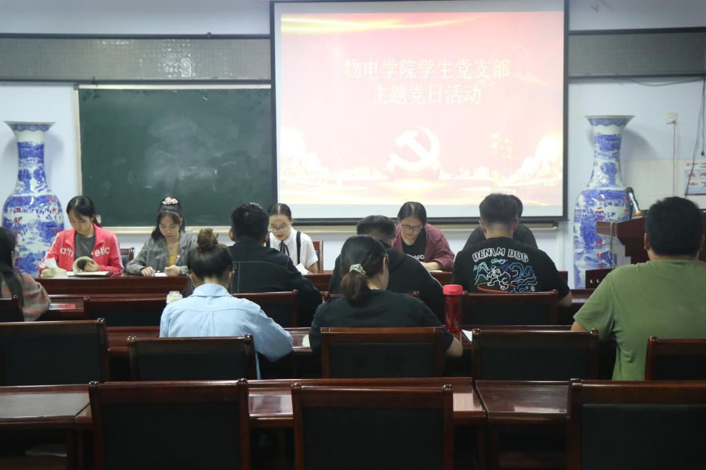 9月24日下午,物电学院学生第一、二党支部全体党员在和钧楼222里开展了以“师德师风”为主题教育的党日活动,活动由学生第一党支部书记袁梦同志主持。