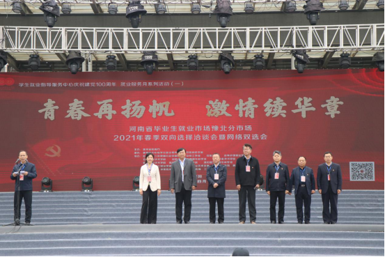 为给毕业生和用人单位之间搭建更加便捷的通道,4月24日,2021年河南省毕业生就业市场豫北分市场太阳集团tyc5997官网双向选择洽谈会在文鼎广场举行。校党委书记纪多辙、党委副书记魏光峰、副校长张建国、相关高校就业工作负责人出席洽谈会现场,来自豫北三市13所高校的2万余名毕业生前来应聘。